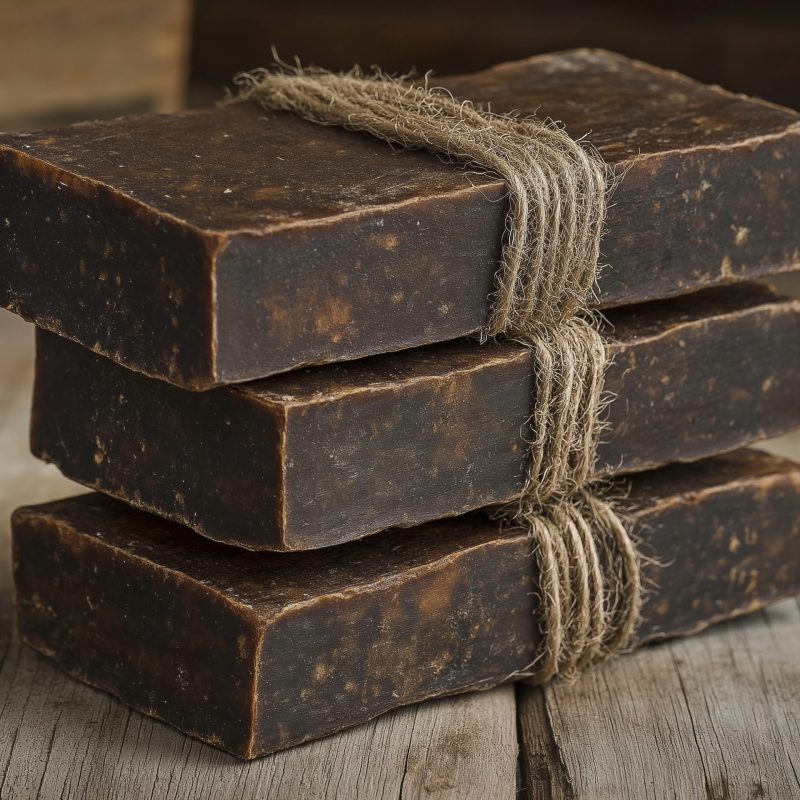Afrikanische schwarze Seife ist ein vielseitiges Naturprodukt, das für Gesicht, Körper und Haare verwendet werden kann.